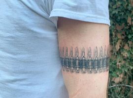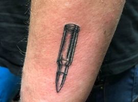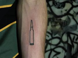 Тату куля, патрон або гільза відносяться до військової символіки. Вперше такі малюнки на своє тіло наносили саме воїни. Вважалося, що зображення кулі лякало ворога. Вони використовували її в якості натільного оберега, що забезпечує потужний захист. Згодом символ отримав більш широке значення. Наприклад, сьогодні багато хто ставиться до такого малюнку як до певного знаку, що приносить удачу під час полювання.