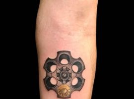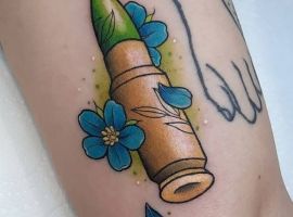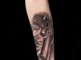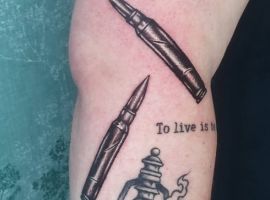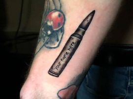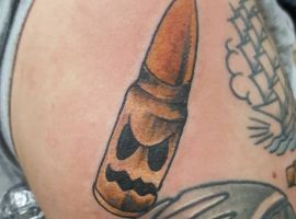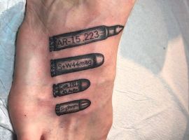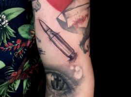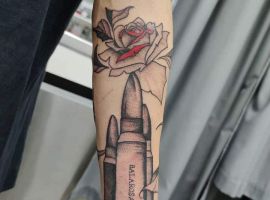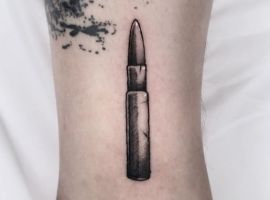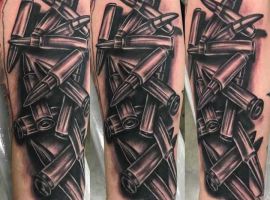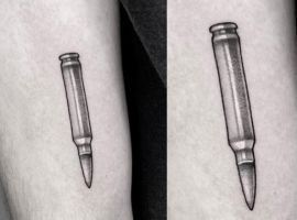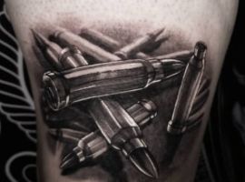 Тату у вигляді кулі чи цілого патрону є кращою характеристикою людини, що вказує на сильні сторони і прагнення досягати своїх цілей. При виборі ескізу слід орієнтуватися на його прихованому сенсі, а також масштабі самого зображення (повинен відповідати ділянці, на якій набивається малюнок). Проконсультуйтеся щодо ескізу у наших майстрів салону Альянс в Києві.