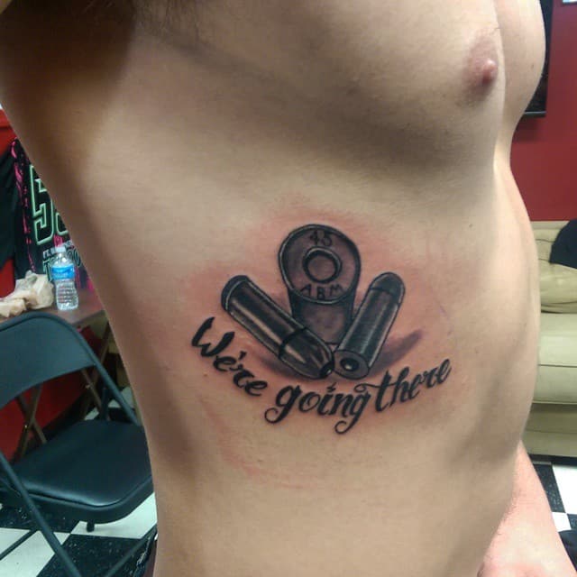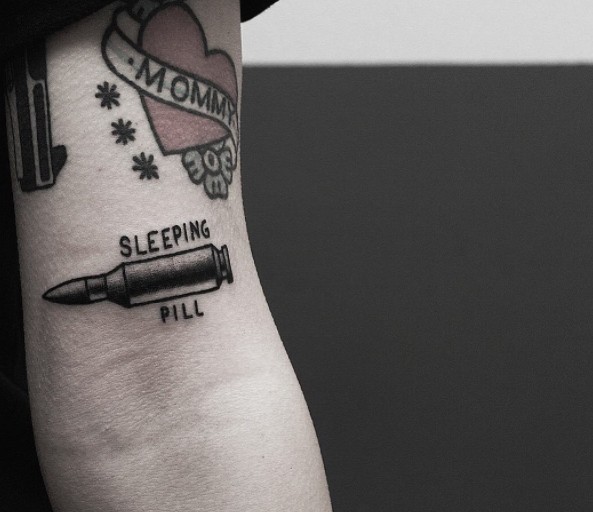 Татуювання куля (патрон) вдало виглядає на будь-якій ділянці тіла. Її наносять на: