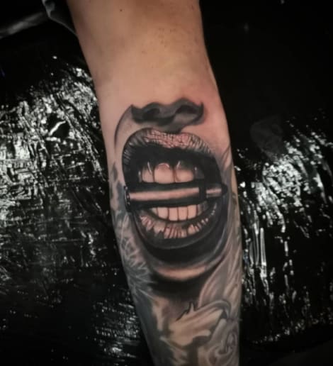 - Рот (куля чи гільза, затиснута між зубами) – тату носить зухвалий і ексцентричний характер. Наділяє свого володарями сильними якостями, говорить про те, що він позбавлений почуття страху, при цьому ще й досить хитрий.