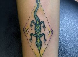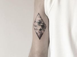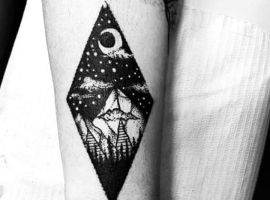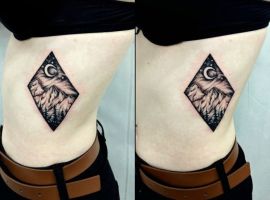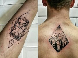 Геометрична фігура ромб має чотири рівні сторони, що символізує гармонію і рівновагу. Тому такий малюнок на шкірі буде дарувати своєму власникові спокій, розміреність і гармонію як внутрішню, так і зовнішню – з людьми і світом. Також цей символ-хороший амулет, який буде захищати свого господаря від будь-якого негативу і залучати в життя удачу. Ну а головний плюс такої ідеї для татуювання – її абсолютна універсальність. Ромб можна виконати абсолютно в будь-якому стилі тату і додати інші цікаві елементи.