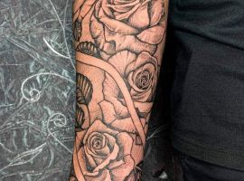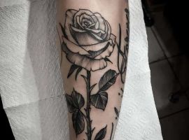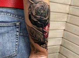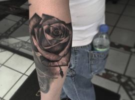 Татуювання троянда для дівчат на руці, як показують різні опитування, є найулюбленішою жіночою ідеєю. Тому не дивно те, що троянди як символи набули величезної популярності в мистецтві татуювання. Тату з цією квіткою вражає не тільки своїм гарним зовнішнім виглядом, але і глибоким смисловим навантаженням. Майстри нашого тату салону виконають для вас тату на стегні троянди, або на руці.