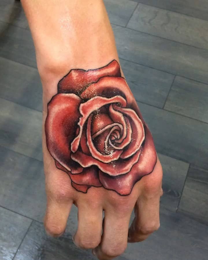 Найчастіше троянди виконують саме на руці і на стегні. І цьому є ряд пояснень. Зараз тату з трояндою на руці вже позбавлено якогось прихованого сенсу. Якщо ви вибираєте саме зону зап’ястя, плеча для виконання тату, то це означає, що ви людина чуттєва, відкрита, готова ділитися зі світом своєю любов’ю і ніжністю. Трохи інше значення у татуювання троянда на стегні. Тут швидше мова йде про показ своєї чуттєвості, розкутості, романтичності, пристрасності.