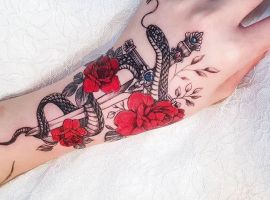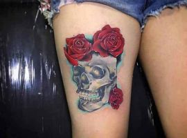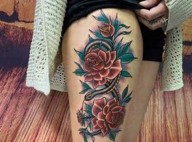 Дуже ефектно виглядає ескіз тату на нозі, особливо на стегні у дівчат. Малюнок витончено підкреслює всі достоїнства жіночої фігури. Татуювання троянда на нозі зустрічається і серед чоловіків – найчастіше на литках або на щиколотці.