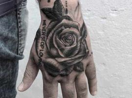Чоловічі зображення з квіткою переважно чорно-білі. Цікаво виглядає намальована в ромбі або трикутнику татуювання троянда на руці. Чоловіче татуювання може доповнюватися новими елементами, що в цілому складе оригінальний рукав з рослиною. Роза на кисті в основному зустрічається в реалізмі або в стилі нью скул.