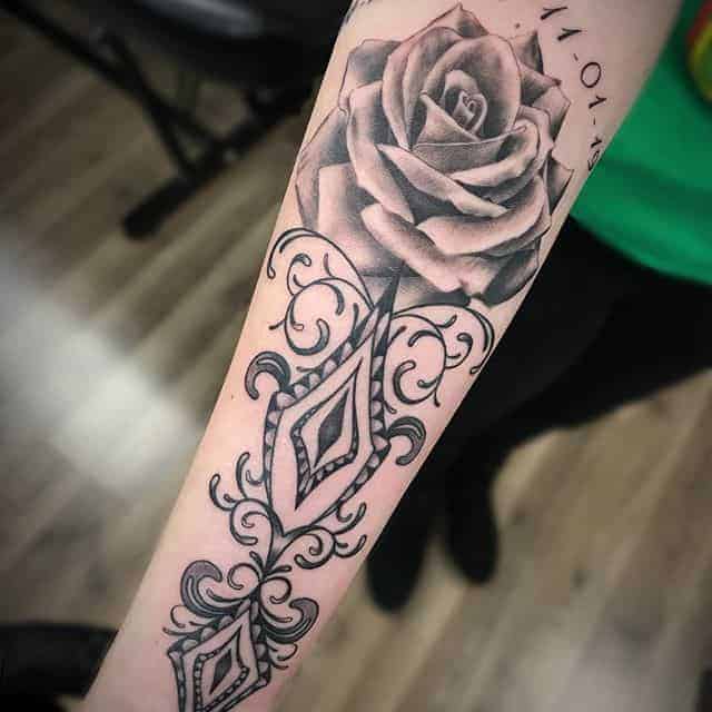 Найпопулярнішим місцем для тату троянда з упевненістю можна назвати руки – передпліччя, плече, зап’ястя, кисть. Тату на руці цікаво буде виглядати в будь-якому стилі, колірній гамі і розмірі.