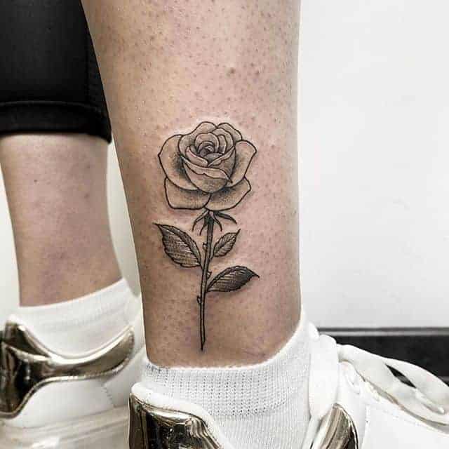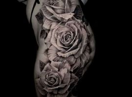 Дуже ефектно виглядає ескіз тату на нозі, особливо на стегні у дівчат. Малюнок витончено підкреслює всі достоїнства жіночої фігури. Татуювання троянда на нозі зустрічається і серед чоловіків – найчастіше на литках або на щиколотці.