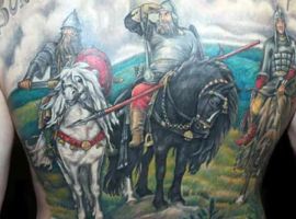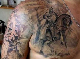 Татуювання Русь з князями – відмінний варіант показати свою повагу історичним цінностям нашого народу. В історії Київської Русі була маса князів, які якимось чином вплинули на хід історії. Наприклад, можна виконати татуювання древніх князів Олега Віщого, Ігоря Рюриковича, княгині Ольги, Святослава Ігоровича, Володимира Великого, Ярослава Мудрого та багатьох інших.