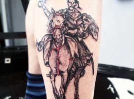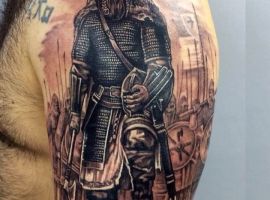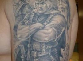 Тату воїнів Русі – відмінний варіант для чоловіка, який поважає історичні цінності в цілому вважає себе людиною мужньою і сильною, готовою боротися за справедливість. Ідей для подібного тату може бути маса, наприклад, стилізоване зображення козака з ведмедем, зображення Тараса Бульби в бою, Саверін Наливайко, який підписує важливий закон тощо.