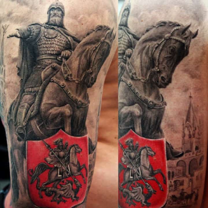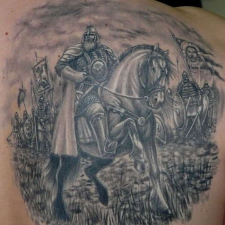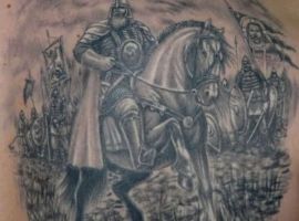 Татуювання Русь з князями – відмінний варіант показати свою повагу історичним цінностям нашого народу. В історії Київської Русі була маса князів, які якимось чином вплинули на хід історії. Наприклад, можна виконати татуювання древніх князів Олега Віщого, Ігоря Рюриковича, княгині Ольги, Святослава Ігоровича, Володимира Великого, Ярослава Мудрого та багатьох інших.