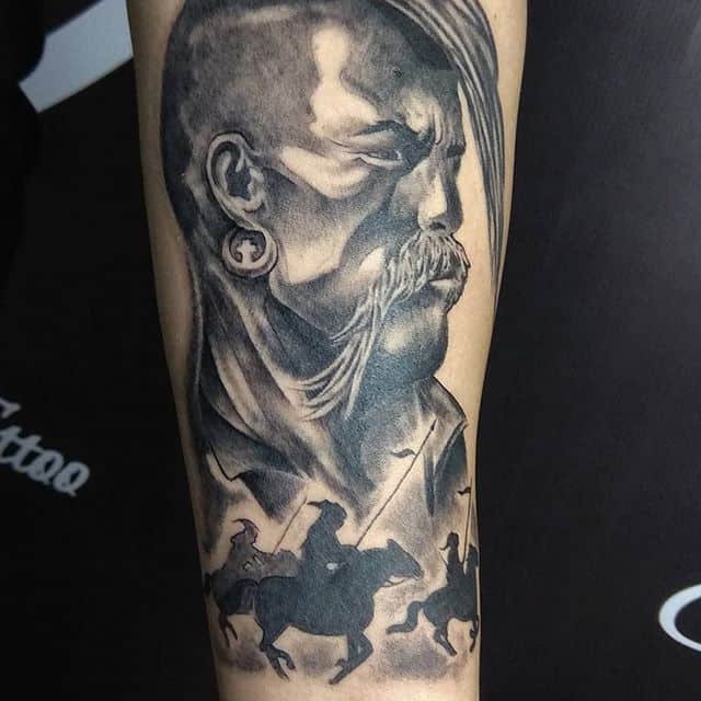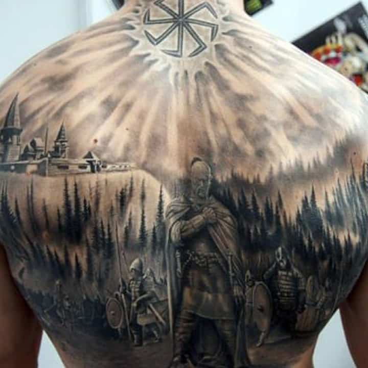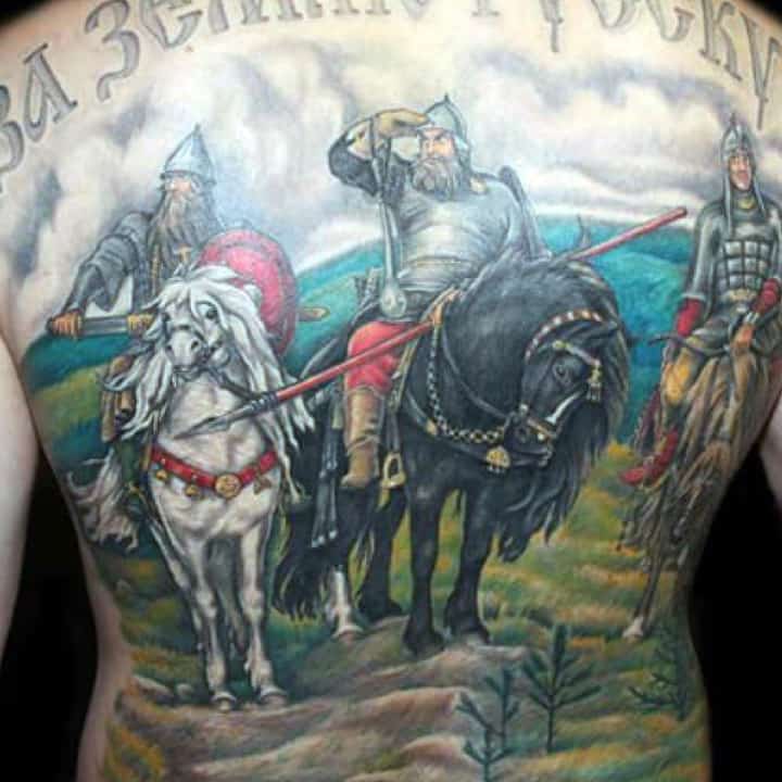 Тату воїнів Русі – відмінний варіант для чоловіка, який поважає історичні цінності в цілому вважає себе людиною мужньою і сильною, готовою боротися за справедливість. Ідей для подібного тату може бути маса, наприклад, стилізоване зображення козака з ведмедем, зображення Тараса Бульби в бою, Саверін Наливайко, який підписує важливий закон тощо.