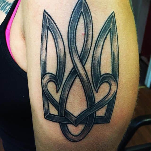 Татуювання з цим популярним українським символом користуються великою популярністю. Виконують їх на різних частинах тіла: на нозі, на руці, а грудях біля серця тощо. Безумовно, давня історія тризуба приваблює всіх тих, хто бажає виконати татуювання з цим символом.
