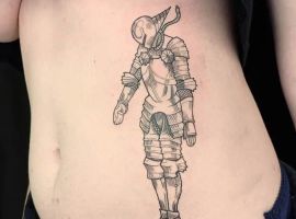 Любителям масштабних зображень рекомендується нанести тату лицаря на спину – найпопулярніше місце для великих полотен. Композиція з лицарем на передньому плані гарантовано викличе захоплення у цінителів татуювань.