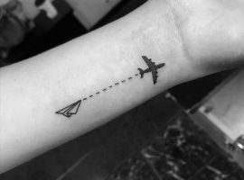 Зображення літака на руці стало справжнім хітом серед усіх ескізів, пов’язаних з авіацією. Саме такому варіанту віддають перевагу багато молодих людей. Це стає позначенням вільного духу і мрійливості, як говорилося раніше. А маленький символ на зап’ясті став справжнім трендом минулих років.