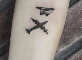 Паперовий літачок несе значення минаючого дитинства. Він теж подобається багатьом людям, особливо дівчатам. Останнім часом відзначається популярність на літак і сердечко. Такий романтичний ескіз також вибирають багато дівчат. Серце ніби описує рух. Іноді навіть роблять парні татуювання з серцем і літачком.