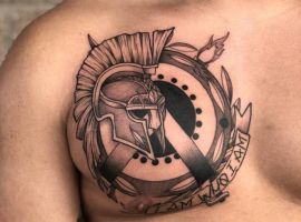 Шолом можна доповнювати і іншими елементами: обладунки, списи, клинки, квіти, сам спартанець – все залежить від вашої фантазії. Відповідні місця розміщення: передпліччя, груди, гомілка, шия. У будь-якому випадку наші майстри тату-салону Альянс в Києві виконають для вас індивідуальний ескіз, а після і тату зі спартанським шоломом в кращому вигляді.