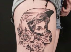 Також цікаво виглядає татуювання шолома в стилях гравюра або дотворк. Використовується в такому випадку єдиний колір, але це не означає, що зображення буде виглядати просто. Навпаки, завдяки вмінням професійного майстра, малюнок стане об’ємним.