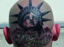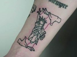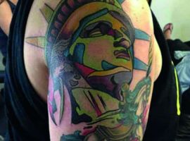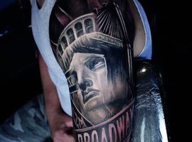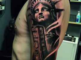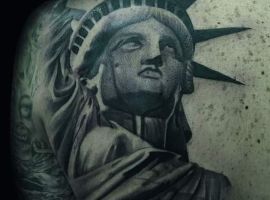Зображення американської Статуї Свободи не так часто можна зустріти на тілах людей в нашій країні. Однак, малюнок цей вкрай цікавий не тільки з точки зору виконання і зовнішнього вигляду, але і сенсу. Статуя свободи говорить про прагнення скинути з себе кайдани, вільнодумство, про визнання рівності у всіму світі.