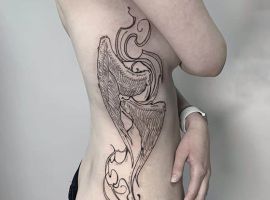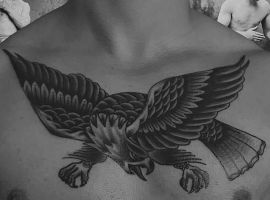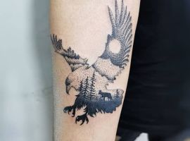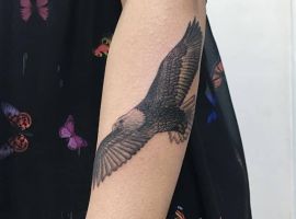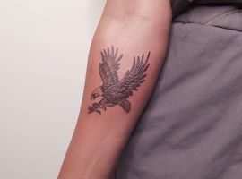 - Орел з крилами. Татуювання з цей сильною істотою символізує незалежність і свободу. Орел говорить про те, що людина не покладається на когось іншого, в житті вона звикла досягагти всього сама. Орел – неймовірно розумна тварина. Тому зображення з ним розповідає і про інтелектуальні здібності.