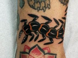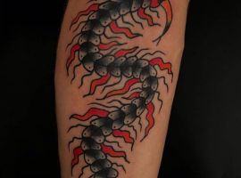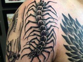 Багато людей відчувають фобію по відношенню до різних комах. Але є ті, які практично «обожнюють» їх, знаходячи сильними, страхітливими і навіть у чомусь мудрими істотами. Іноді ідеєю для татуювання стає і татуювання сколопендра або сороконіжка. Тату майстра в салоні Альянс з радістю зроблять для вас таку незвичайну татуювання.
