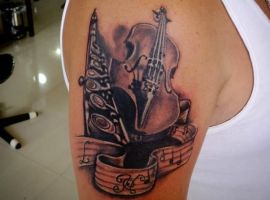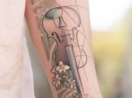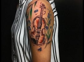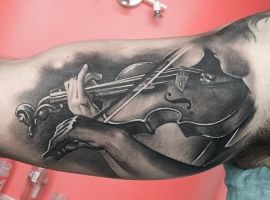 Тату скрипка може бути абсолютно універсальною. Вона підійде і чоловікові, і дівчині, а виконати її можна в будь-якому тату-стилі. Звичайно, яскравіше і ефектніше всього виглядають тату у великому обсязі і реалістичному стилі на руці або на плечі.