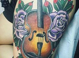 Значення татуювання скрипка – це тонкі почуття і переживання. Тільки цей прекрасний інструмент може видавати ніжні і витончені. Тому звучання скрипки часто асоціюють з душею, ранимою натурою, чуттєвістю і романтичністю. Швидше за все, таку ідею для тату вибере людина добра і ранима, який все приймає близько до серця.