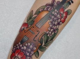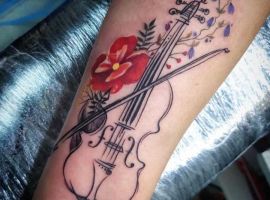 Однак дуже витончено виглядають Графічні чорно-білі малюнки, наприклад на шиї, на горлі або на зап’ясті. Також цікаво виглядають Доповнення до скрипки у вигляді квітів. Найголовніше – знайти досвідченого майстра, як у салоні Альянс у Києві, який допоможе створити або підібрати вдалий ескіз саме для Вас.