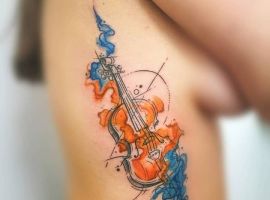 Звичайно, найчастіше такий натільний малюнок роблять музиканти. Люди, для яких гра на скрипці – найулюбленіше заняття в житті. Однак, в якості натільного малюнка скрипка (контрабас, віолончель) може мати і більш об’ємне значення. І буває, що таке тату роблять ті, хто не має прямого відношення до музики.