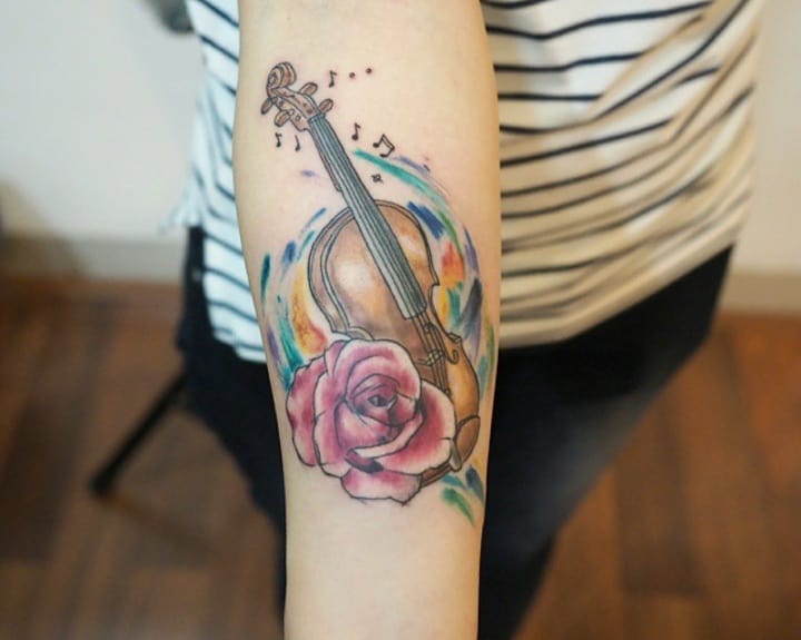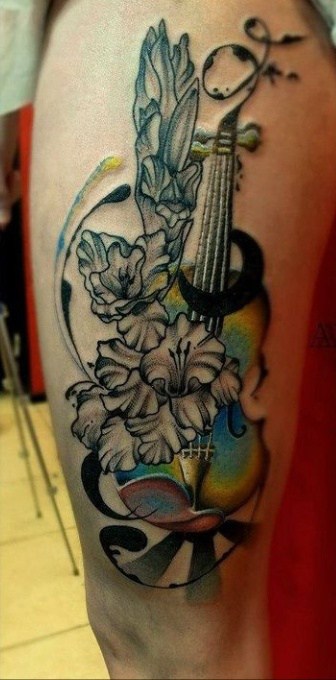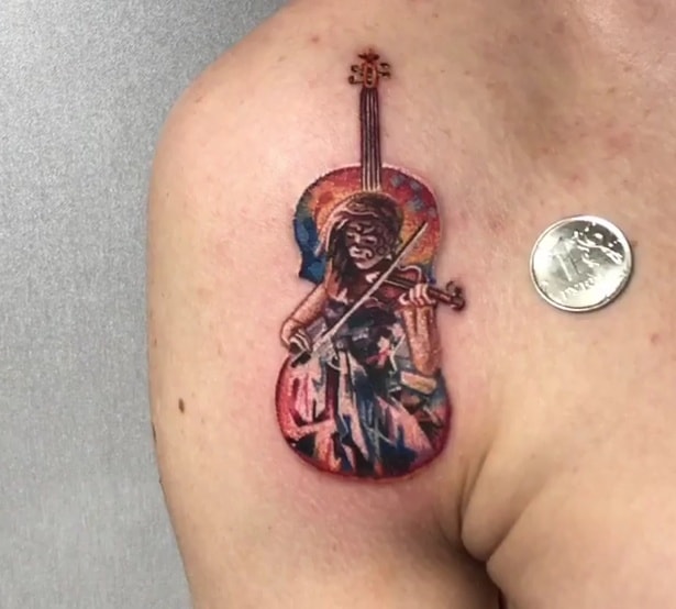 Звичайно, найчастіше такий натільний малюнок роблять музиканти. Люди, для яких гра на скрипці – найулюбленіше заняття в житті. Однак, в якості натільного малюнка скрипка (контрабас, віолончель) може мати і більш об’ємне значення. І буває, що таке тату роблять ті, хто не має прямого відношення до музики.