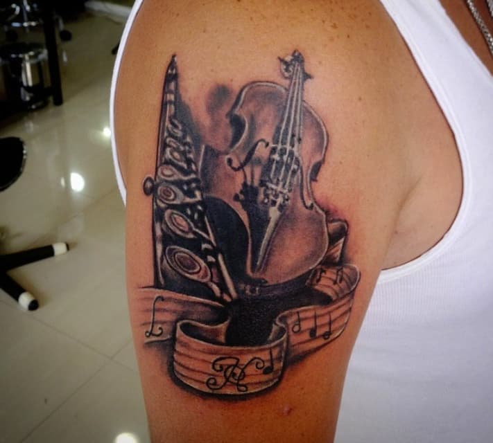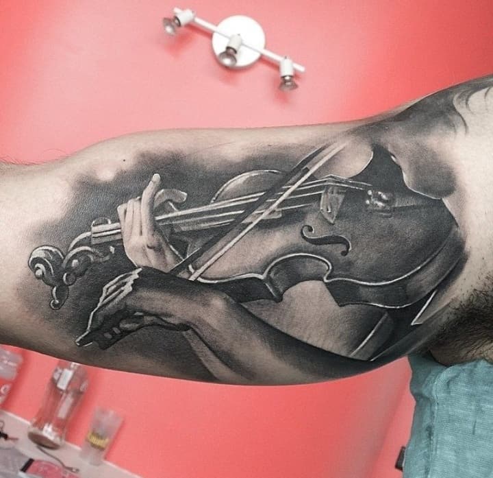 Музика – те, без чого не уявляють собі життя багато людей. Вона допомагає зануритися в певний стан, налаштуватися на потрібний лад і навіть впоратися з важким періодом в житті. А для деяких людей, музика – це хобі, творчість, робота і головна пристрасть в житті. Часто музиканти в Києві роблять собі тату із зображенням свого інструменту, кожен з яких має і свій символізм. Розберемо що означає татуювання скрипка, або схожі візуально на малюнках струнні інструменти контрабас, та віолончель.