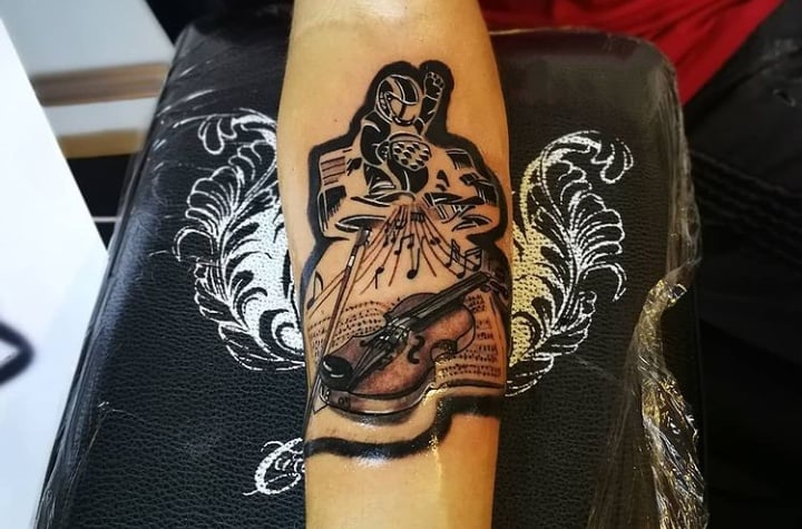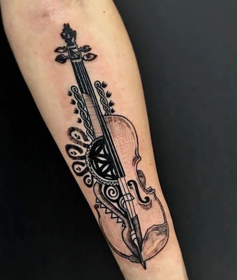 Тату зі скрипкою або контрабасом вибере людина з творчим поглядом на життя