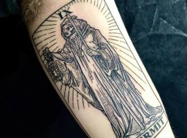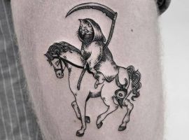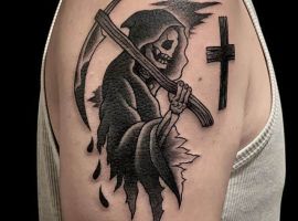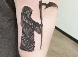 Згідно з історією, вперше смерть стала асоціюватися зі старою жінкою з косою за часів епідемії чуми. Тоді люди говорили, що смерть у вигляді хвороби приходить в будинок і “скошує життя”. Які ж значення має татуювання “смерті з косою”?