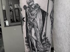 Багато людей в Києві набивають собі смерть татуювання і не до кінця розуміють значення цих малюнків. А хтось навпаки, від незнання, придає таким тату містичний характер і боїться набивати їх. Але що ж насправді означають татуювання із зображенням смерті? У цій статті ви дізнаєтеся, який характер мають малюнки на тілі із зображенням смерті з косою, з годинником, картами і мечем.