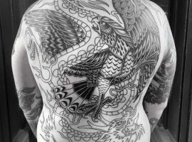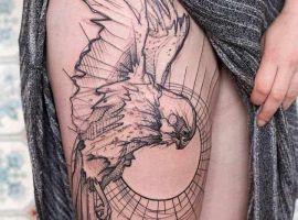 Стилізовані тату з соколом не менш привабливі. Вони відображають данину традиціям, а джерела натхнення для ескізів можна брати у величезній культурній спадщині, де відображена суть благородства і сили соколов.