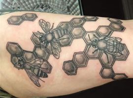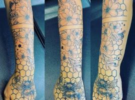 Звичайно, татуювання з бджолиними сотами роблять ще й люди, які займаються бджільництвом, люблять цю справу і не уявляють без неї свого життя. В такому випадку на малюнку зображуються не тільки гексакони, але і бджоли.