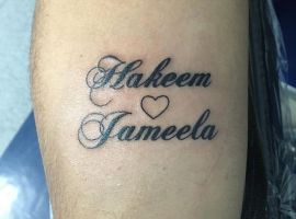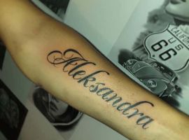 3. Татуювання ім’я коханої людини – поширений запит. У такий спосіб хлопці і дівчата хочуть підтвердити серйозність і щирість своїх почуттів, намірів. Зазвичай це знак відданості, зізнання в любові. Часто набивають їх в поєднанні з квітами, серцем, нескінченністю. А ось якщо почуття не взаємні, ім’я улюбленого можуть зобразити разом з черепом, шипами, кинджалом. В даному випадку, варто дуже добре обміркувати це рішення. Адже на відміну від родичів, улюблені можуть з часом змінитися. А ось часто небажана пам’ять про них збережеться назавжди на вашому тілі. З цієї причини багато їто впевнений, що не можна робити татуювання ім’я других половинок. Адже швидше за все татуювання ім’я Олександр (наприклад) або тату з ім’ям Вікторія на Вашому тілі буде викликати тільки жаль і роздратування.