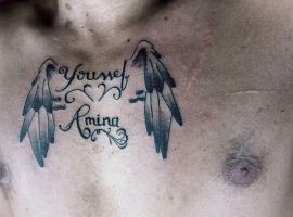1. Імена батьків набивають досить часто. Безумовно, вони позначають щиру любов і вдячність рідним. У такій спосіб діти можуть сказати спасибі за турботу, тепло, опіку, визнання величезної важливості батьків у житті дитини. З таким значенням імена батьків поєднують з іншими елементами. Наприклад, зображення з розпростертими крилами означатиме почуття захищеності і спокою поряд з мамою і татом. Зображені разом зі знаком нескінченності, імена будуть символізувати тепло і затишок рідного дому, безмежна любов до них.