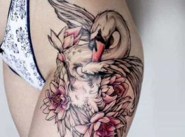 Тату з прекрасним лебедем чудово прикрасить будь-яке тіло. Таке зображення на жіночому тілі може символізувати її життєві цінності – сім’я, відносини, любов.