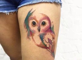 Дуже популярні тату на стегні для дівчат з тваринами і птахами.