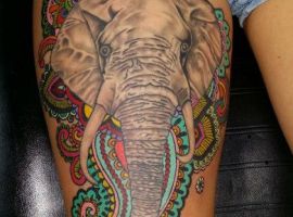Такий малюнок найчастіше вибирають собі сміливі дами, які точно знають, чого вони хочуть. Тату слон несе за собою значення мудрості, прагнення до перемоги, щиру любов, цнотливість. Ескіз зі слоном вибирають дівчата, які постійно прагнуть до розвитку, ідеалу.