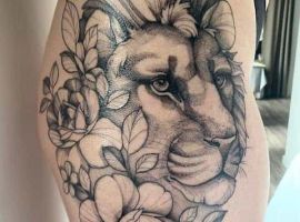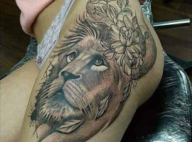 Проте, жіночі тату на ніжці із зображенням лева виглядає також дуже ефектно. Можна зустріти ескізи, де на «Ляжці» розташовується відразу два представника котячих. Значення татуювання з левом досить неоднозначне і полярне. З одного боку-це символ мужності, відваги, сміливості, сили, благородства. З іншого ж боку тату Лева на стегні у жінки може бути знаком її відданості своїй родині і вогнища, благополуччя, материнства.