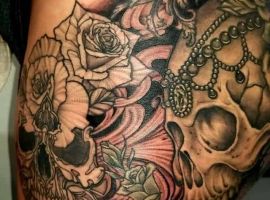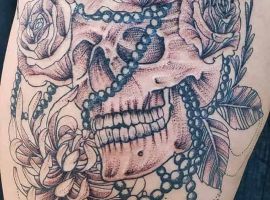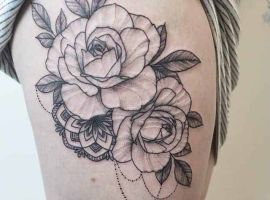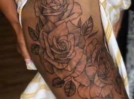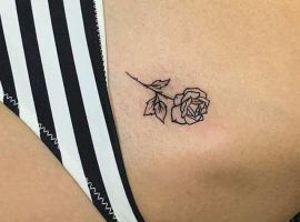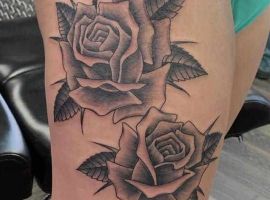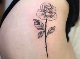 Такий натільний малюнок виглядає дуже жіночно і зачаровує. За значенням, найчастіше це може бути символ гордості, розкоші, любові, жіночої краси. Цікаво, що значення тату троянда на стегні може змінюватися в залежності від колірної гами ескізу. Так, червона квітка-це безумовно знак любові, пристрасті, білий – чистота, невинність, чорний – туга, розчарування, а синій – благородство, недосяжність.