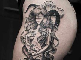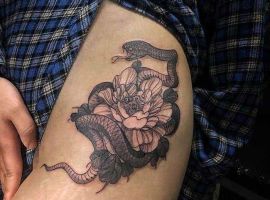 Татуювання на стегні – оригінальна прикраса для сміливих і яскравих дівчат. Ескізи таких тату зустрічаються в різних стилях і тематиках. Тату майстри зібрали кращі ідеї татуювань для дівчат на стегні.