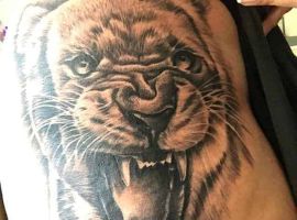 Тигр в татуюванні завжди виглядає просто чудово. При чому не важливо, виконана робота в кольорі або чорно-біла. За значенням таке татуювання також ближче до чоловічої-це сила, влада, лють, краса, гнів.