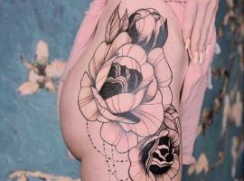 - Півонія. Одні з найпопулярніших в мистецтві тату квіти.
