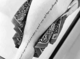 Татуювання на стегні напис