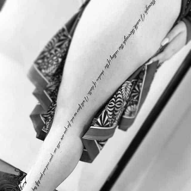 Татуювання на стегні напис