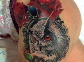 В ескізах популярне поєднання сови з годинником. Таке зображення для себе скоріше виберуть панянки, які хочуть звернути увагу в першу чергу до свого внутрішнього світу.