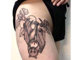 Дуже популярні тату на стегні для дівчат з тваринами і птахами.