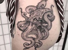 Татуювання на стегні-це оригінальний спосіб розповісти про себе і свій характер. Такі малюнки виглядають настільки цікаво і яскраво, що перспектива носити їх на собі все життя тільки радує! А майстри студії «Альянс» у Києві створюють унікальні ескізи.
